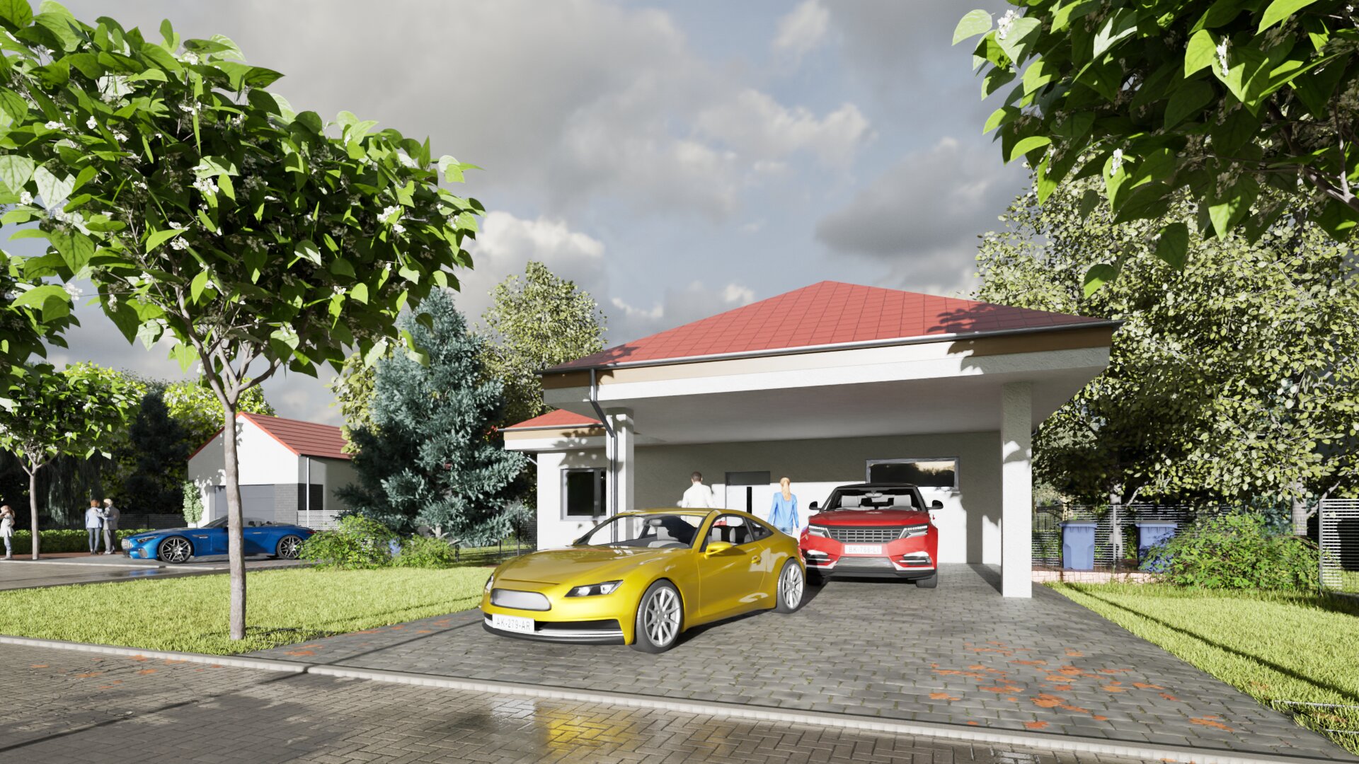 Ogromnym atutem są duże, prywatne ogrody, widoczne już z progu dzięki imponującym przeszkleniom w salonie. Tworzą one wyjątkowy efekt połączenia wnętrza z zielenią, zapewniając przestrzeń do zabawy dla dzieci, weekendowe grillowanie czy spokojny poranek z kawą – bez sąsiadów za ścianą w oknie naprzeciw.